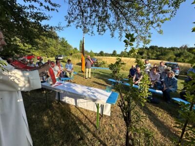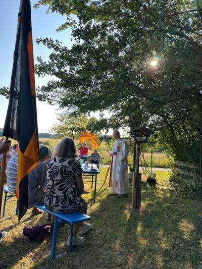 Die Kolpingsfamilie Herrsching feierte am 4. Juli 2025 das Hochfest des heiligen Ulrich mit einer Feldmesse. Dem Festgottesdienst zum Fest des Augsburger Bistumspatrons auf der Hannawies mit 42 Personen stand Präses Simon Rapp vor.
