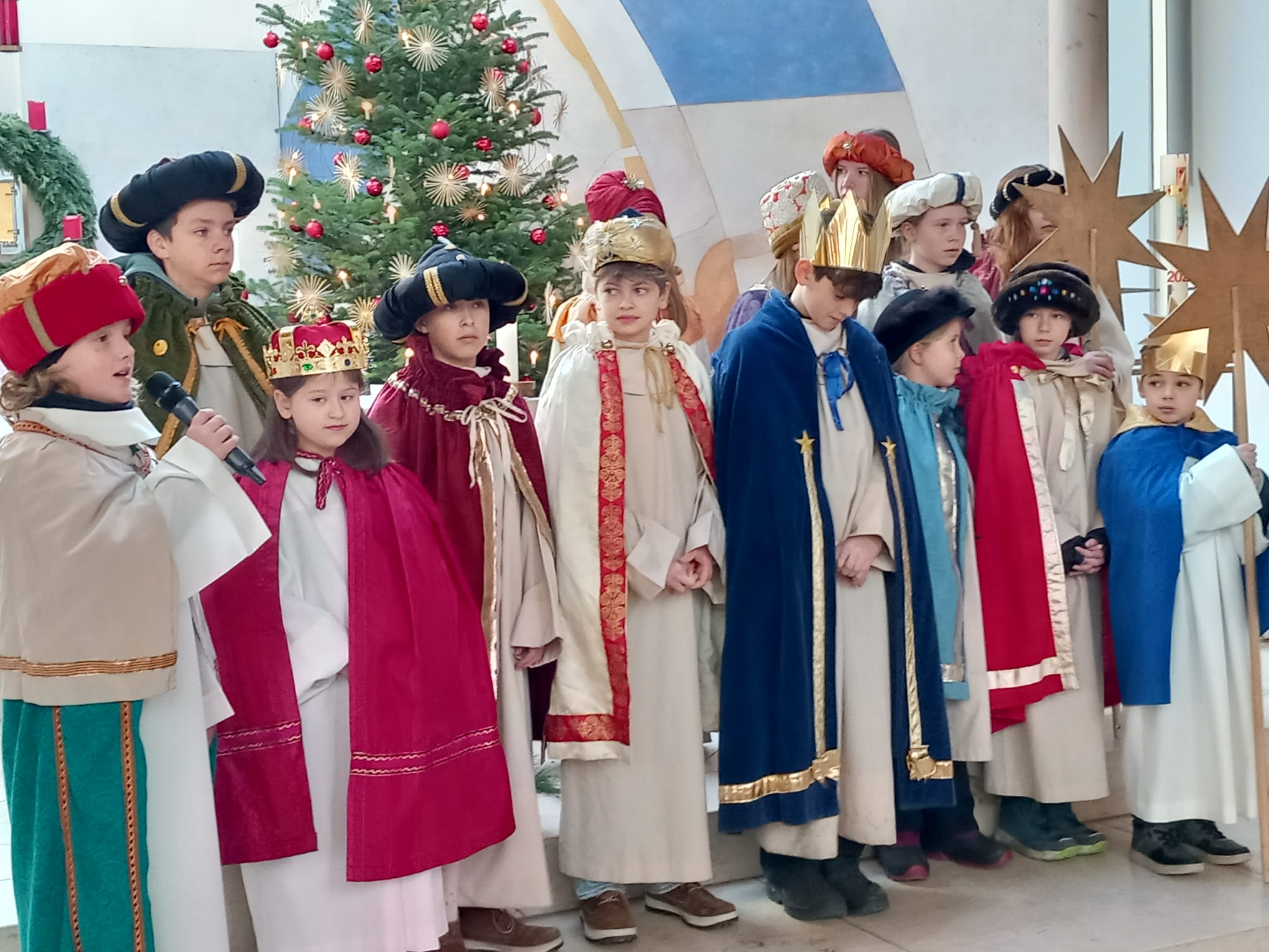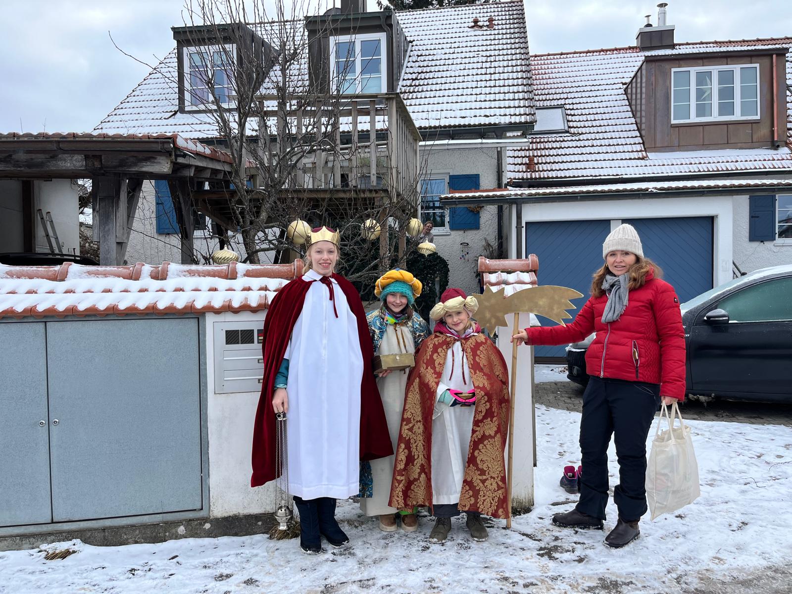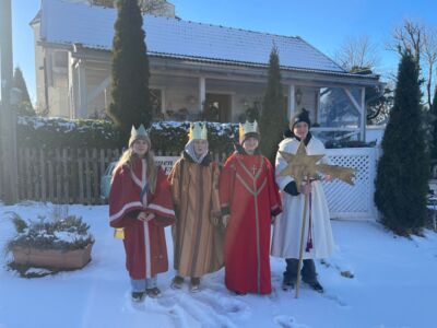 Kälte, Schnee, lange Wege – nichts davon hat 67 Kinder und Jugendliche mit ihren Begleitpersonen davon abhalten können Breitbrunn, Buch, Herrsching, Inning und Widdersberg in den ersten Tagen des neuen Jahres mit dem Segen Gottes zu fluten. Drunter dick eingepackt und darüber perfekt sitzende Festgewänder, so zogen sie in Gruppen von Haus zu Haus, verkündeten die Botschaft von Gott, der sich mit den Untiefen des menschlichen Lebens solidarisch zeigt und sangen den Menschen ihre Freude über diesen Gott zu. Dabei sammelten Sie fast 15.000,00 € für das Kindermissionswerk, das diese Gelder für bessere Lebens- und Bildungschancen für Kinder und Jugendliche in aller Welt verwendet. Die Freude der Sternsinger ist jedes Jahr wieder Antrieb für viele Ehrenamtliche, die im Vorfeld und im Hintergrund die Aktion begleiten. „Allen gilt mein Dank!“, so Pfarrer Simon Rapp, der immer wieder begeistert ist davon, denn „das gibt es nur einmal im Jahr, dass junge Christen von Haus zu Haus gehen und von ihrem Glauben erzählen.“ Das gäbe auch ihm und allen Mitarbeitenden der katholischen Pfarreiengemeinschaft Ammersee-Ost immer wieder Ansporn für die Arbeit im neuen Jahr