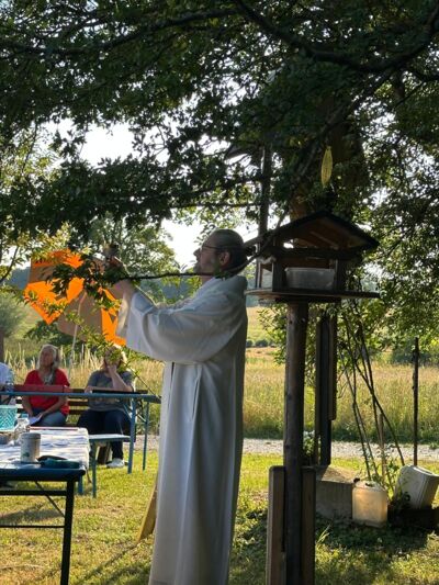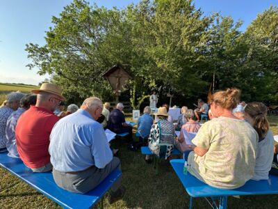 Die Kolpingsfamilie Herrsching feierte am 4. Juli 2025 das Hochfest des heiligen Ulrich mit einer Feldmesse. Dem Festgottesdienst zum Fest des Augsburger Bistumspatrons auf der Hannawies mit 42 Personen stand Präses Simon Rapp vor.