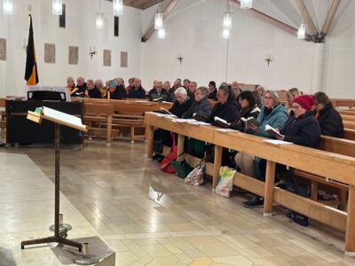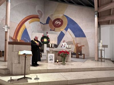Rund 42 Besucher feierten mit der Kolpingsfamilie Herrsching am 04.12.2025 den Kolping Gedenktag mit anschließendem Hirtenfeuer. Den festlichen Gottesdienst in der St. Nikolaus-Kirche gestaltete unser Präses Dekan Simon Rapp. Die Musikalische Leitung hatte Elisabeth Schmidt: Mit Unterstützung von neun Mitgliedern des Chores Cantilena, Bruno Türk Klarinette, Jakob Lishek Trompete, und Kolpingmitgliedern, wurden überwiegend Teile der Kolpingmesse von N. Becker und dem Gotteslob gesungen.